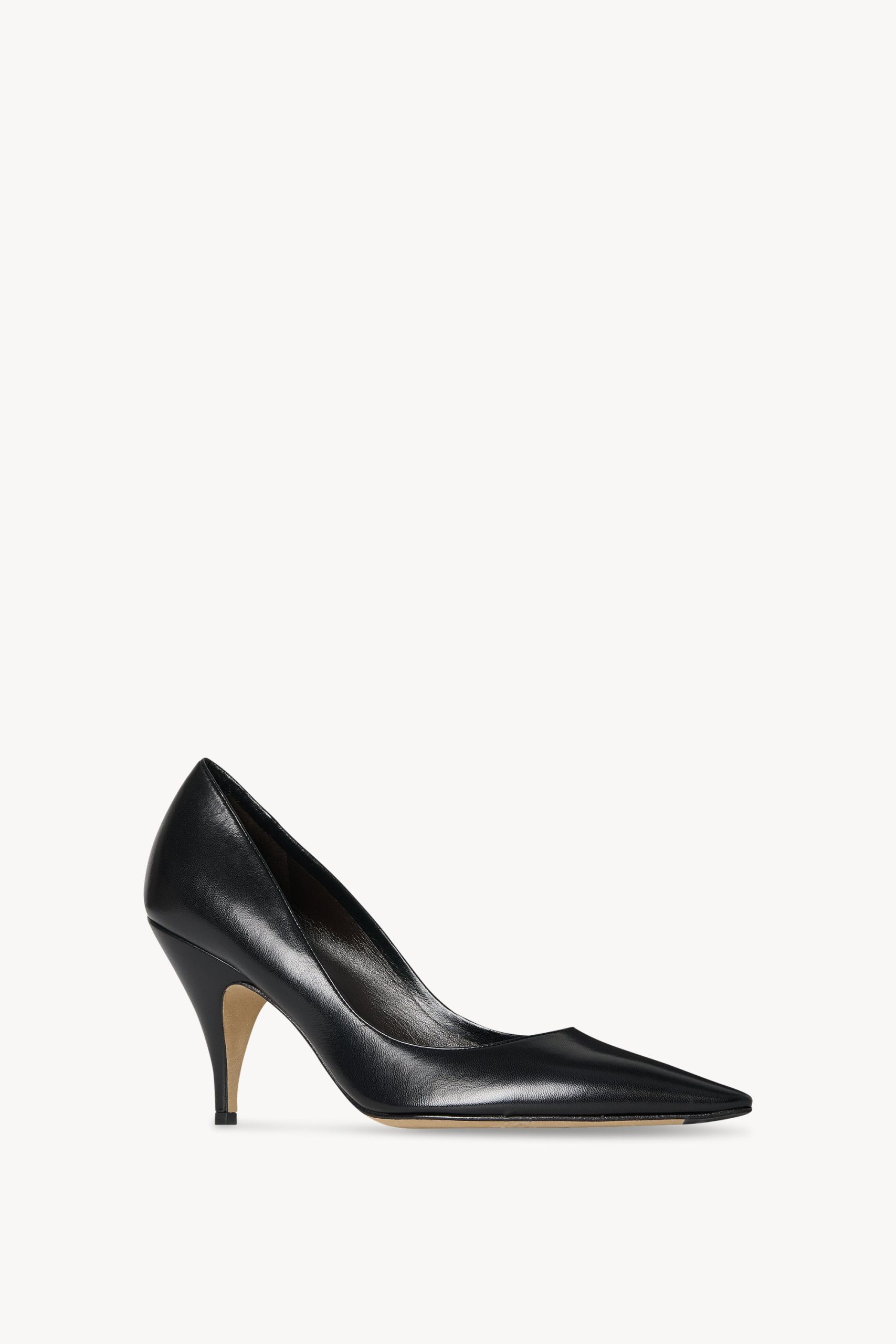 Classic high heel shoe in soft lambskin leather with pointed toe and leather sole.