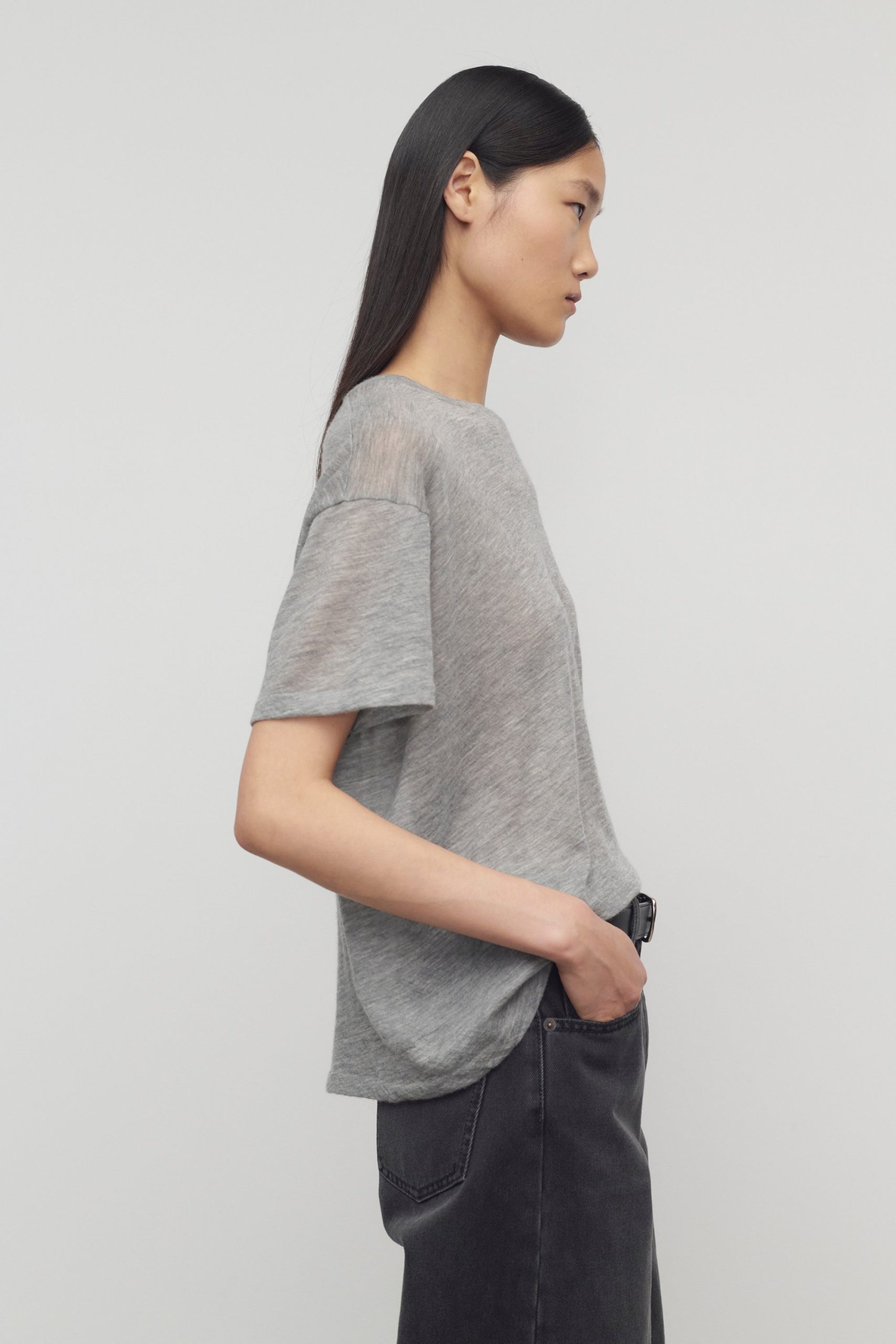 Relaxed. short-sleeved t-shirt in soft cashmere jersey with ribbed crewneck and signature center back detail.
