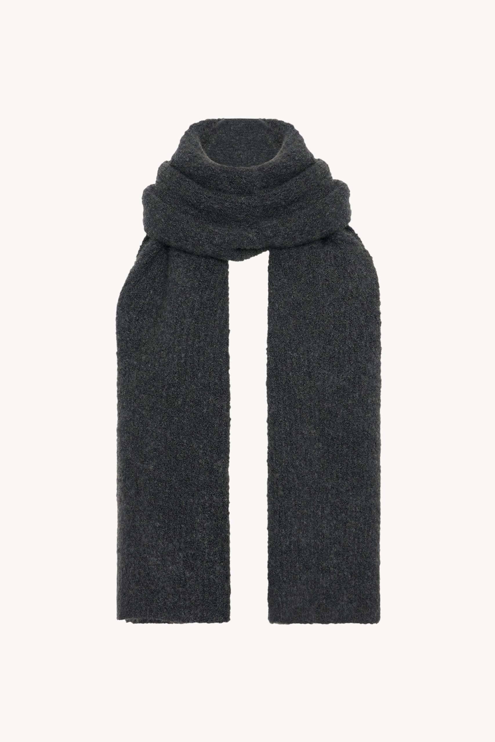 Extra-long knit scarf in textured alpaca and cashmere boucl?? with clean edge finish.