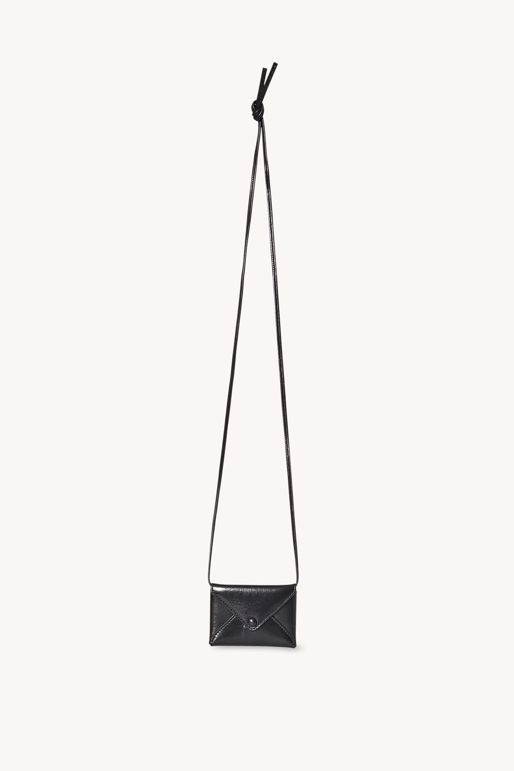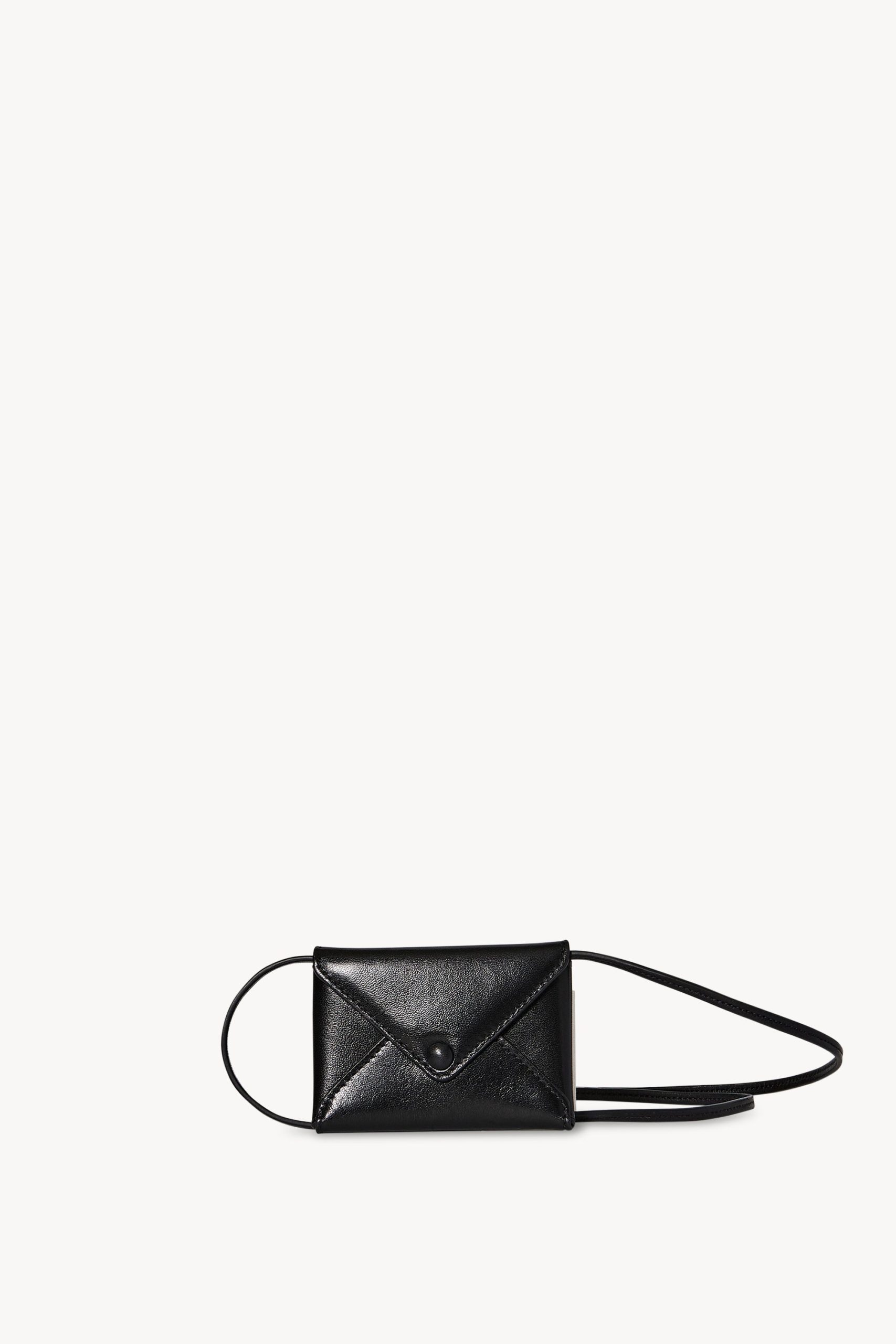Small envelope pouch in smooth nappa leather with snap closure and slim strap.