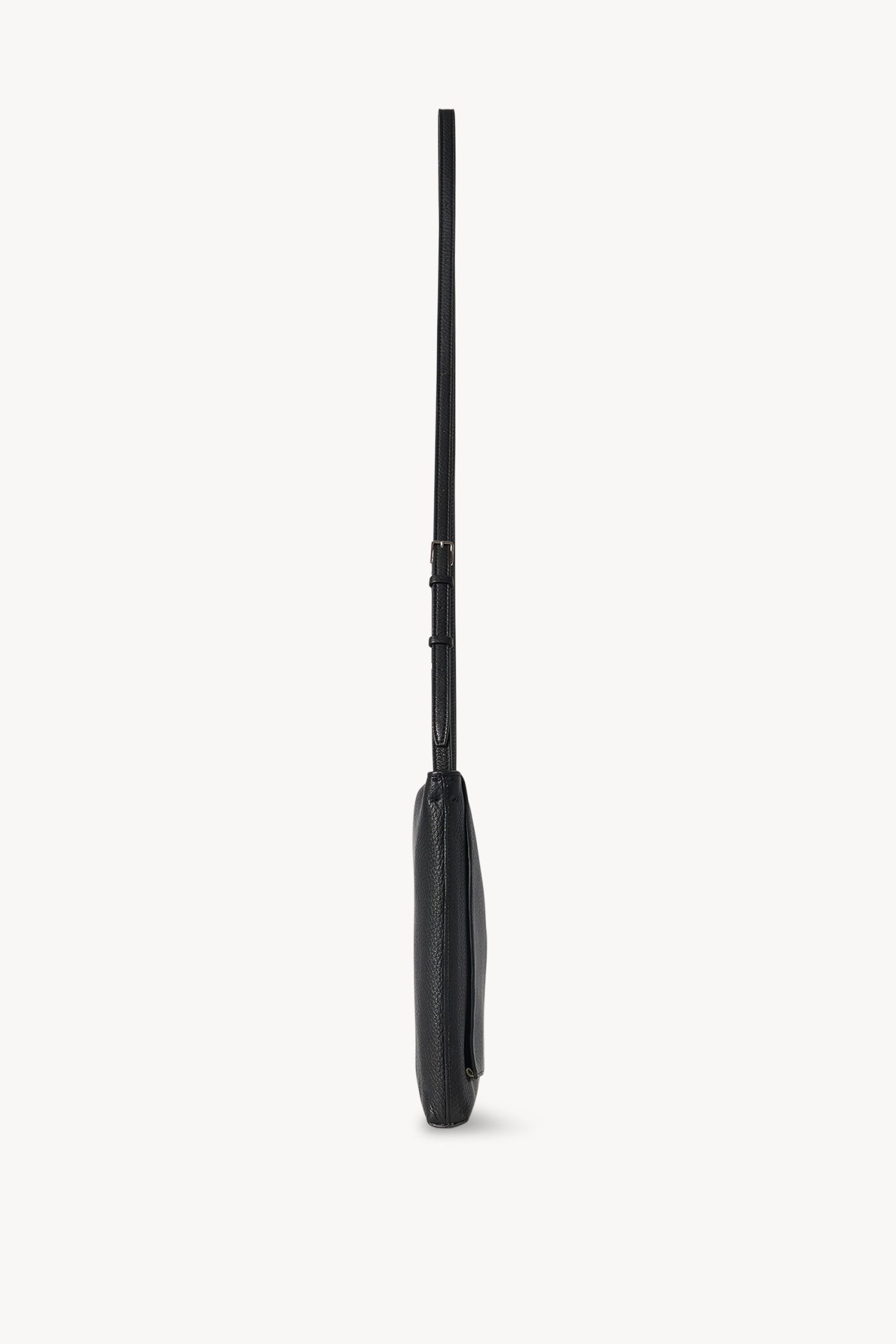 Soft messenger bag in durable deerskin leather with overlapped front flap. removable interior zip pocket. and adjustable strap with metal buckle.