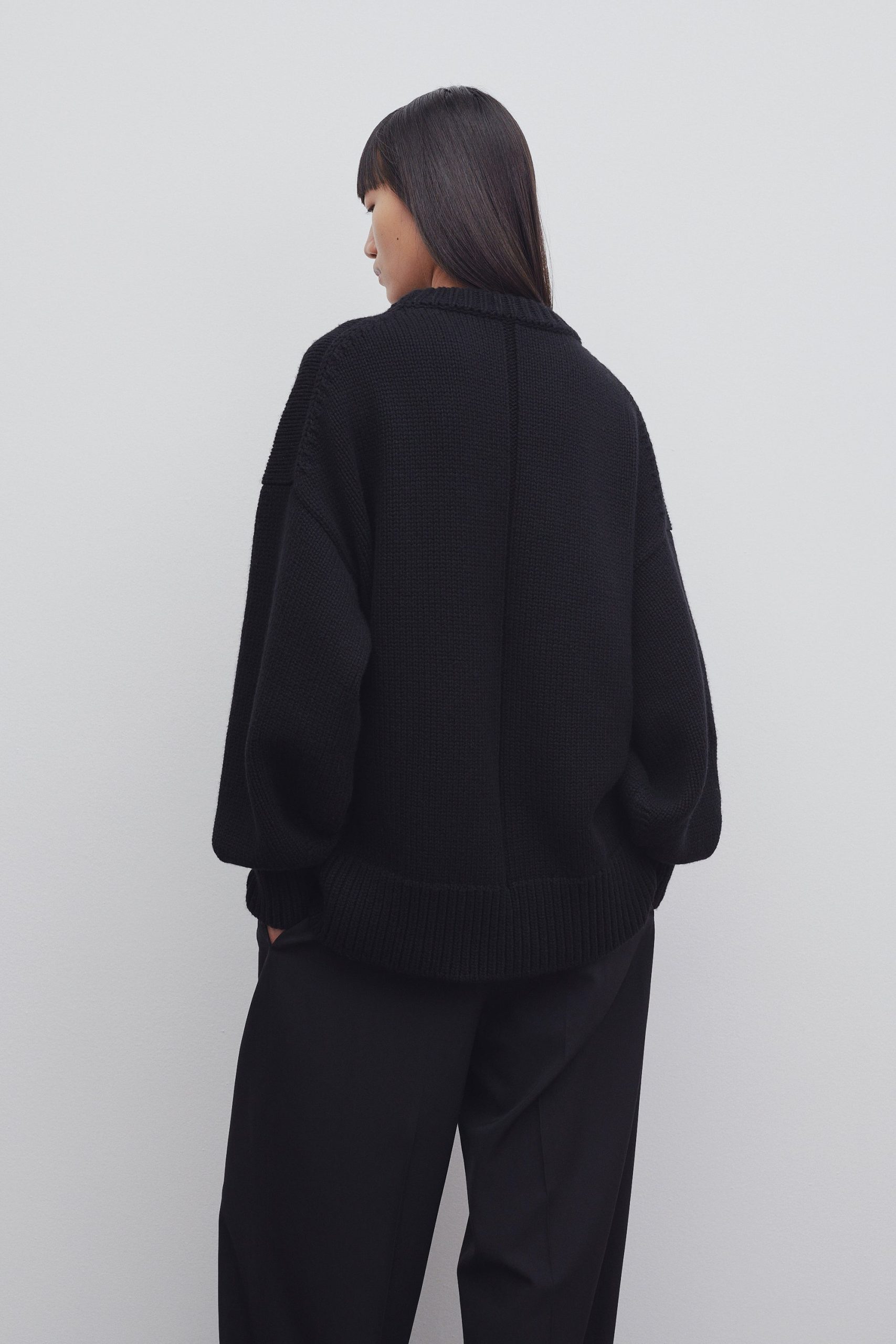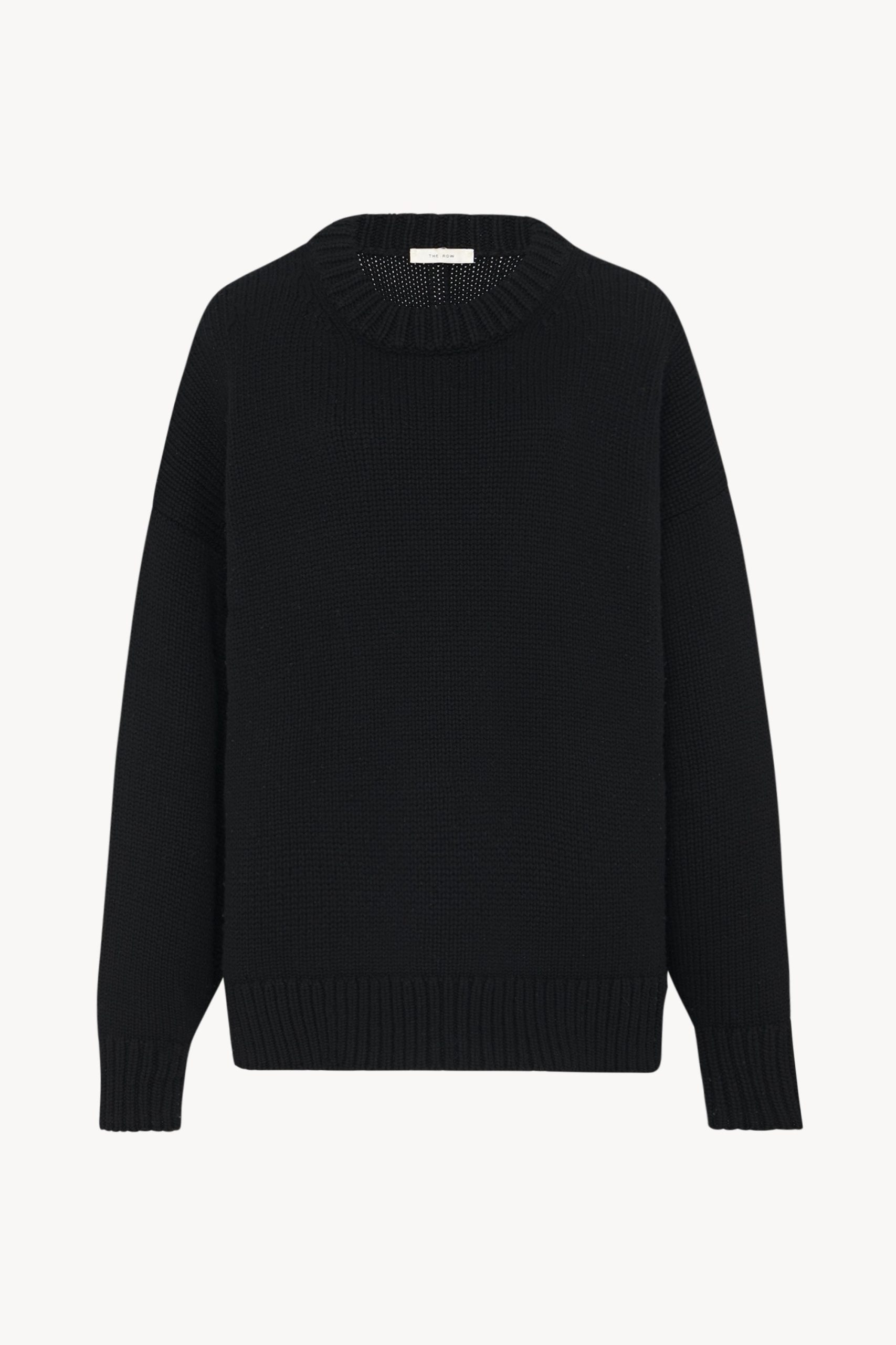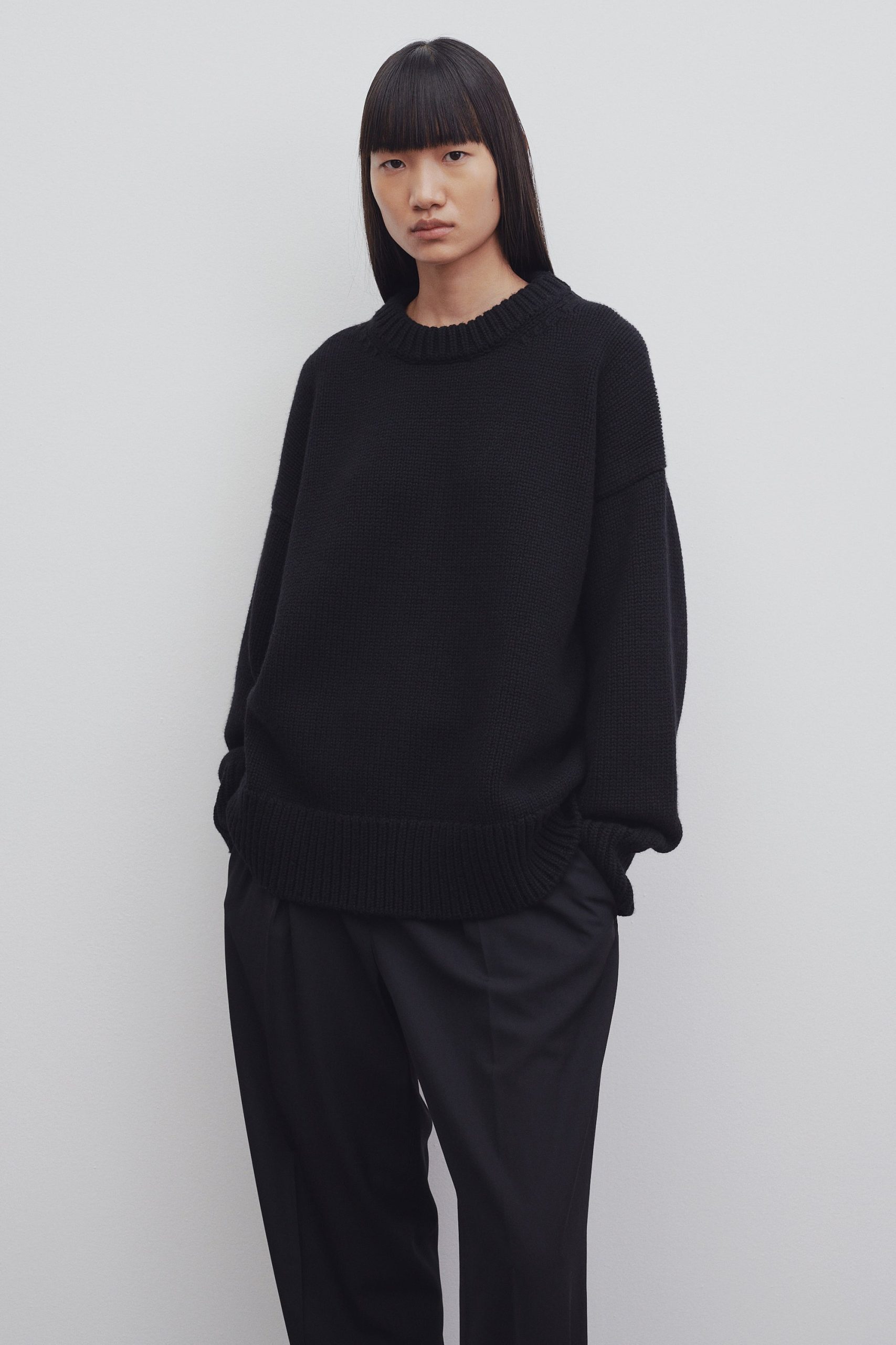 The Row Essentials crewneck sweater in multi-stitch. heavyweight wool and cashmere knit with ribbed neckline. cuffs and hem.