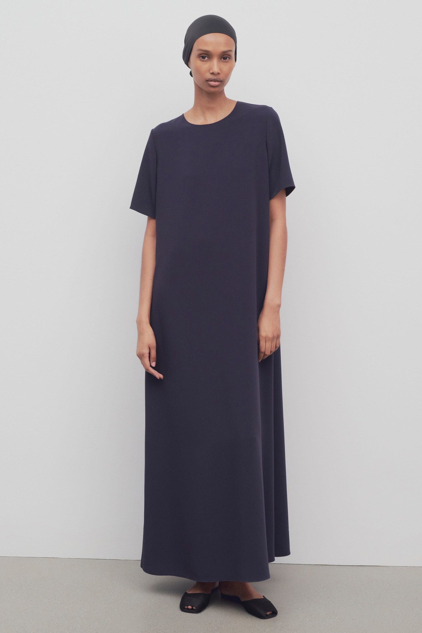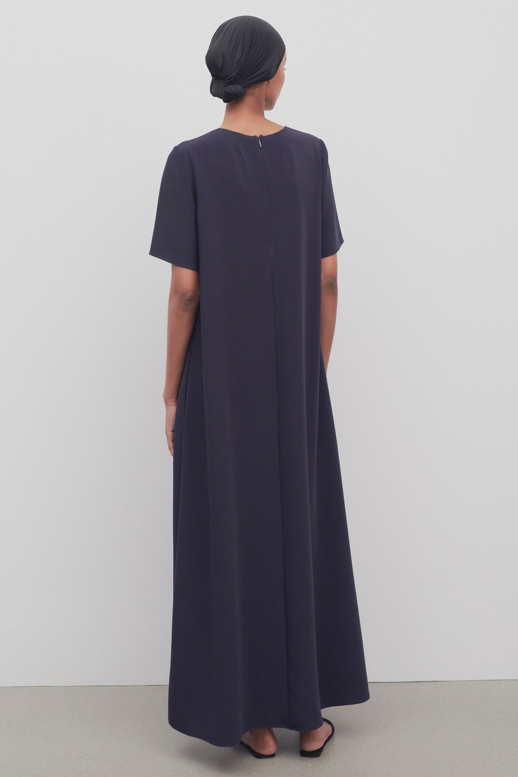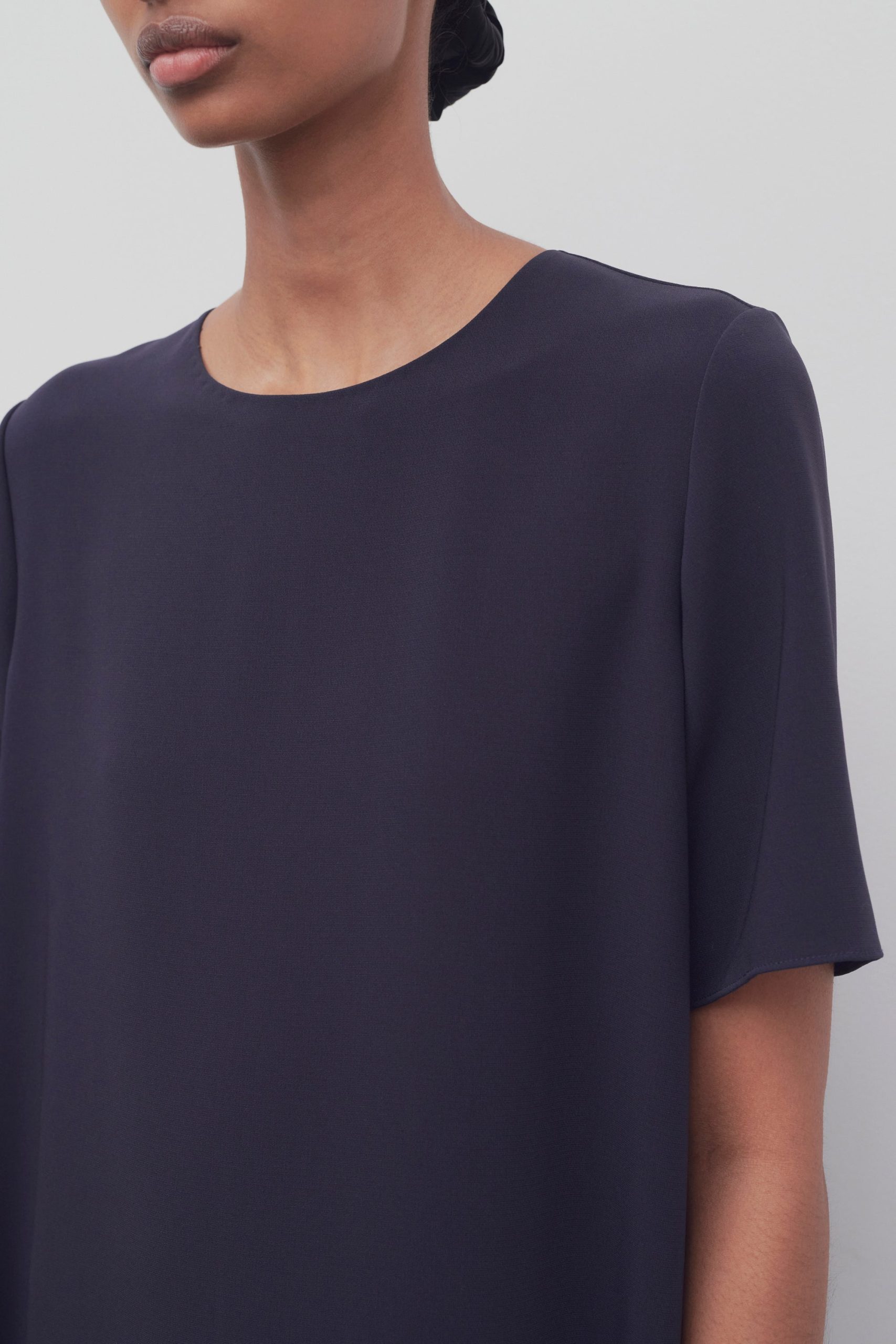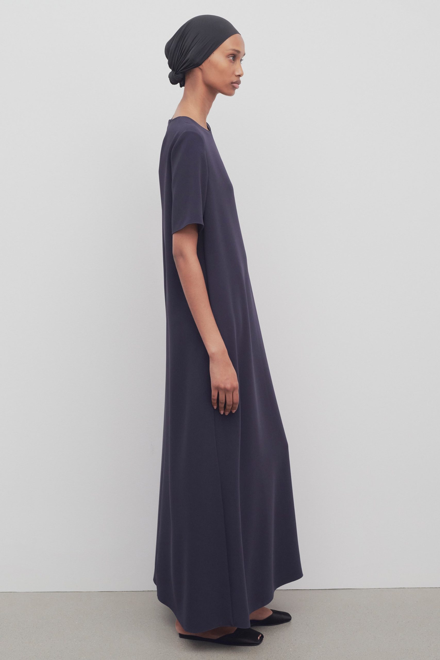 The Row Essentials oversized short sleeve dress in fluid double-faced cady with A-line silhouette.