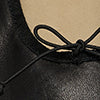 Classic ballet flat in smooth nappa leather with grosgrain piping. adjustable elastic tie. and flexible leather sole.