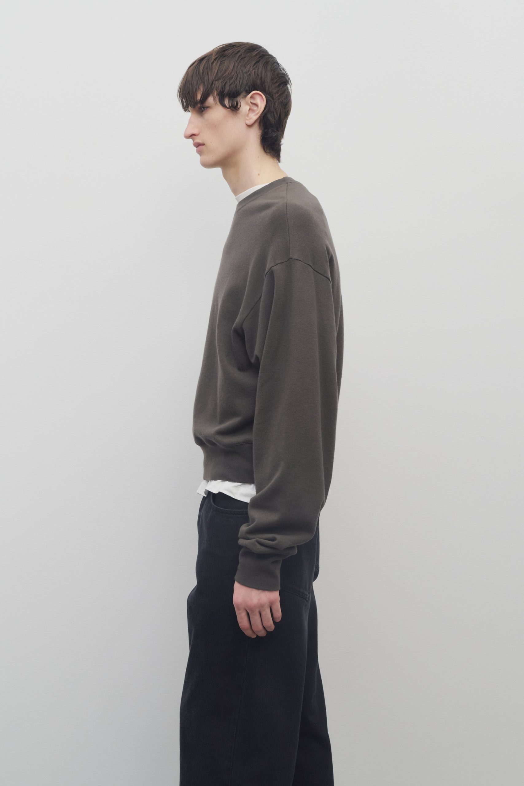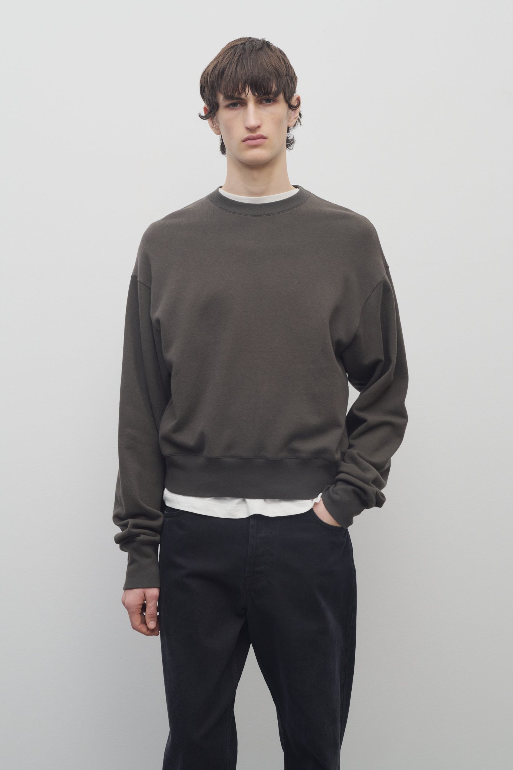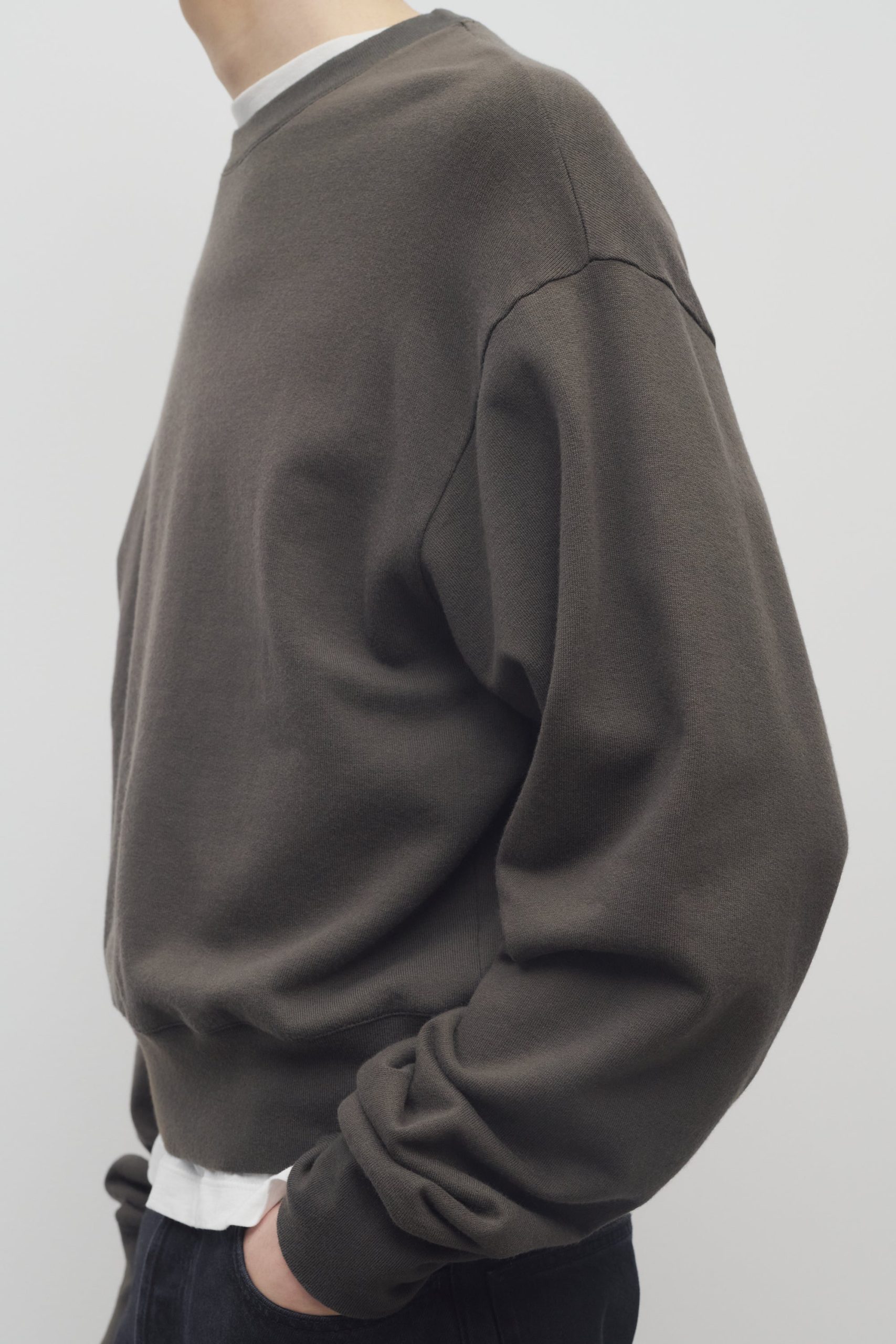 Relaxed crewneck sweatshirt in cotton and cashmere French terry with dropped shoulders and ribbed neckline. cuffs. and hem.