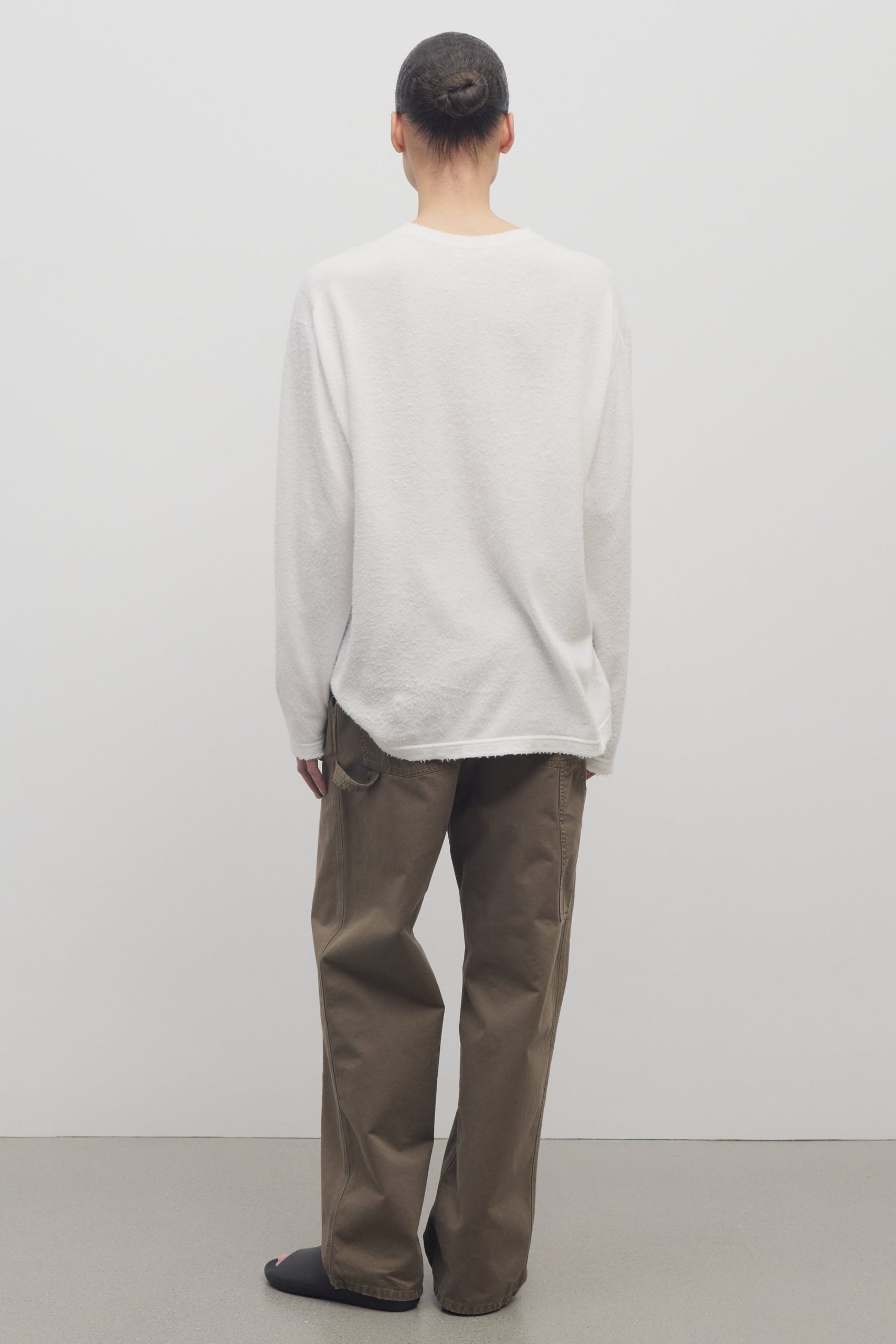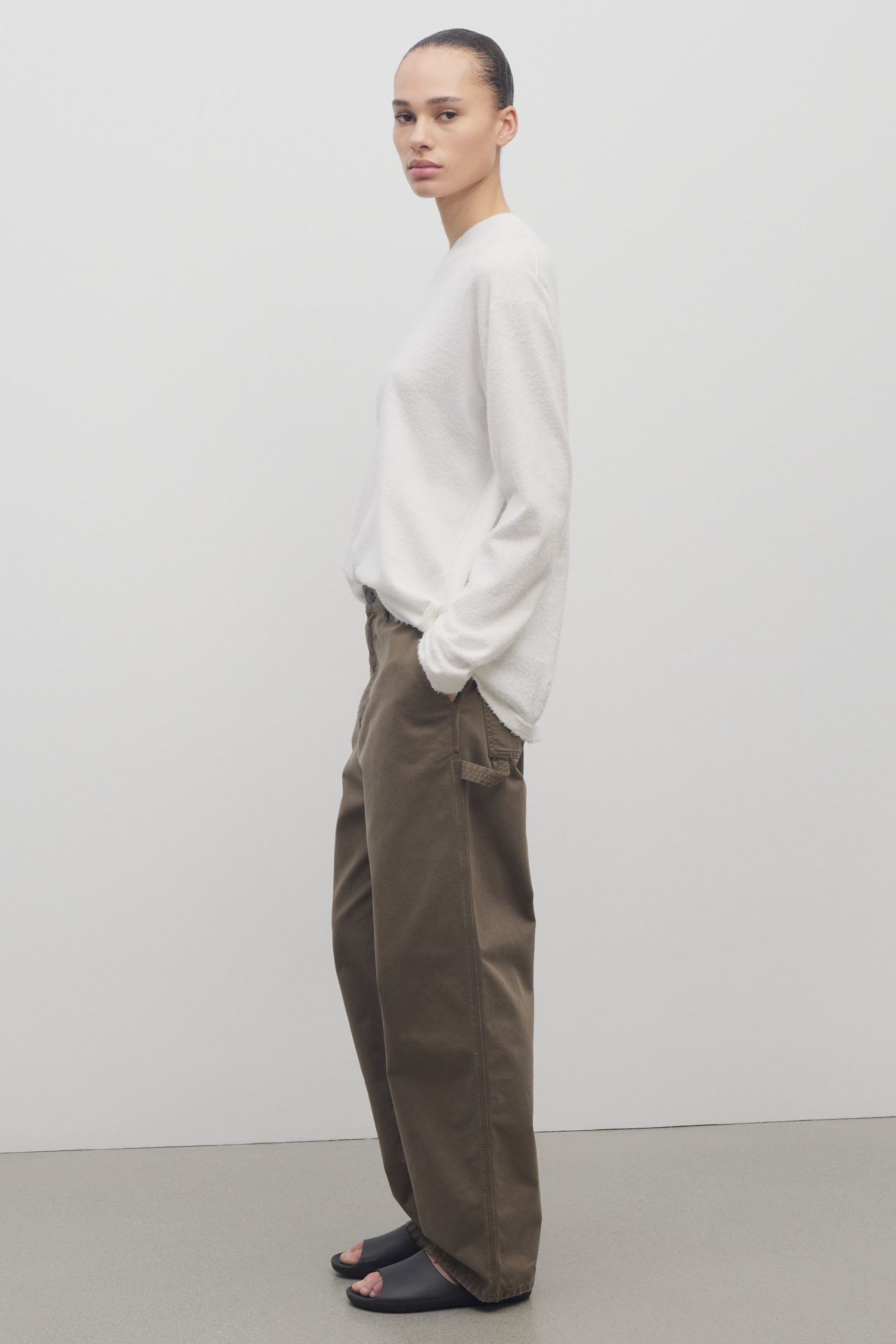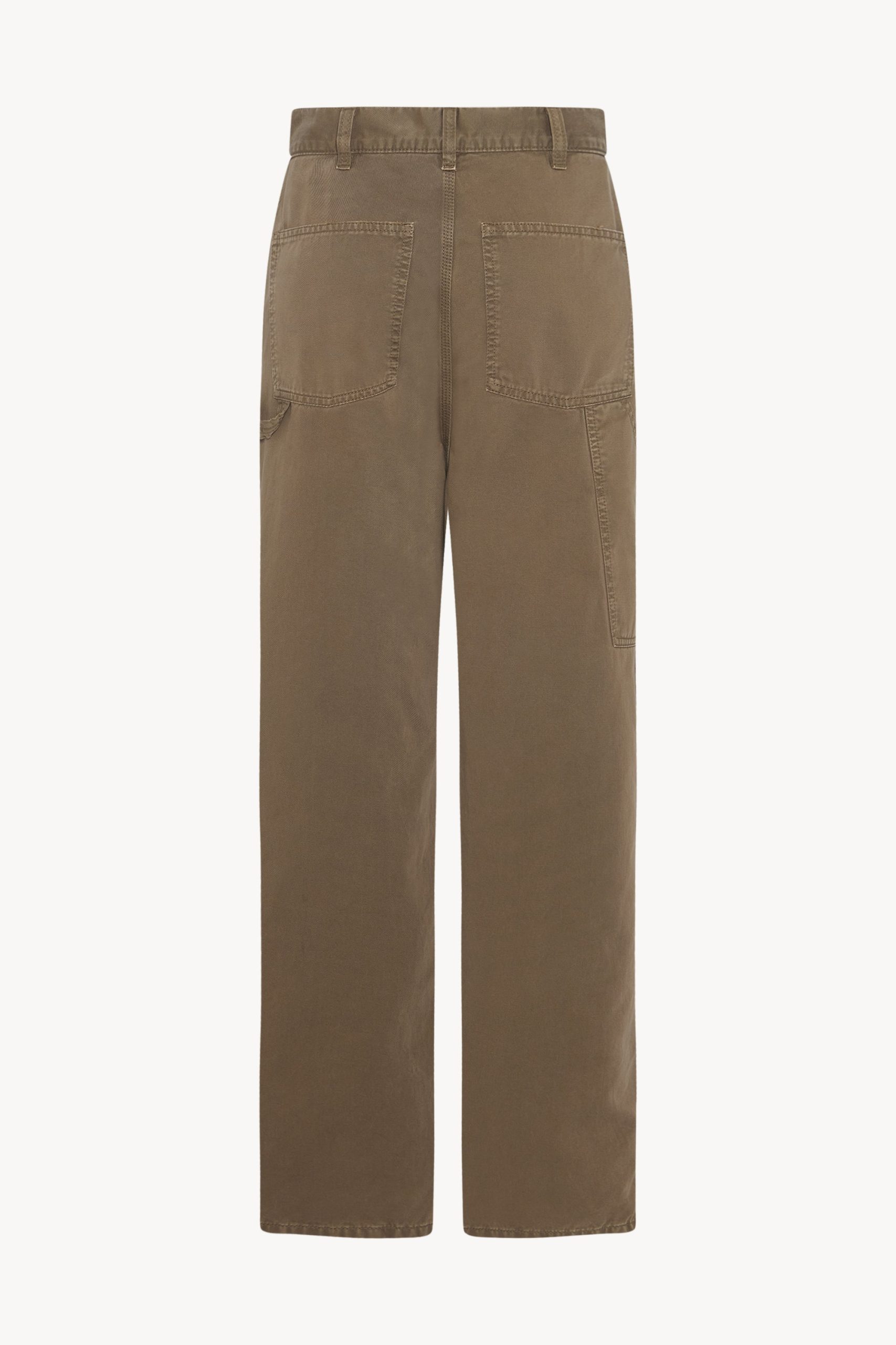 Mid-rise cargo pant in airy cotton gabardine with straight leg. painter’s loop detail. and side slash pockets.