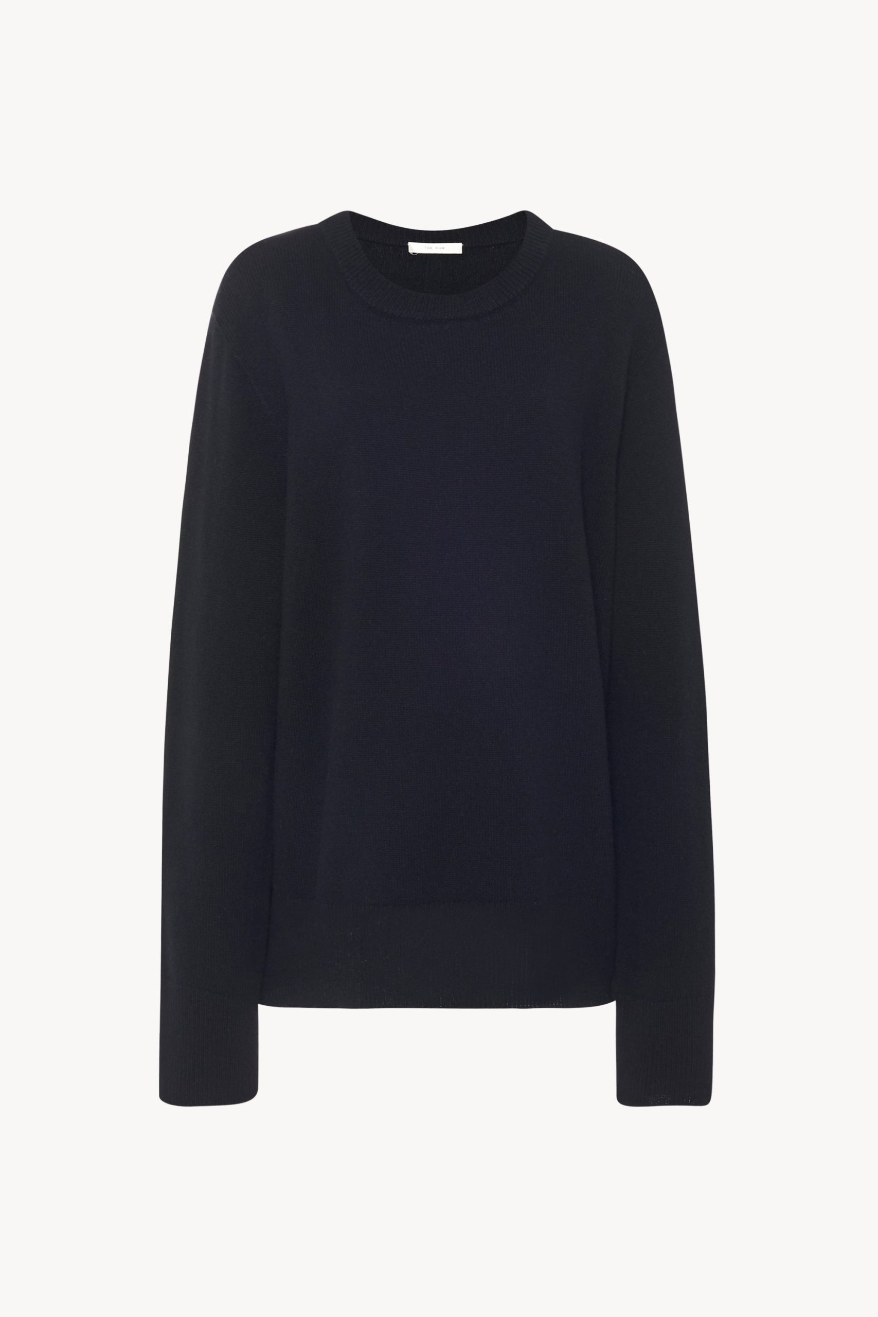 The Row Essentials crewneck sweater in midweight cashmere and wool knit with ribbed neckline. cuffs and hem.
