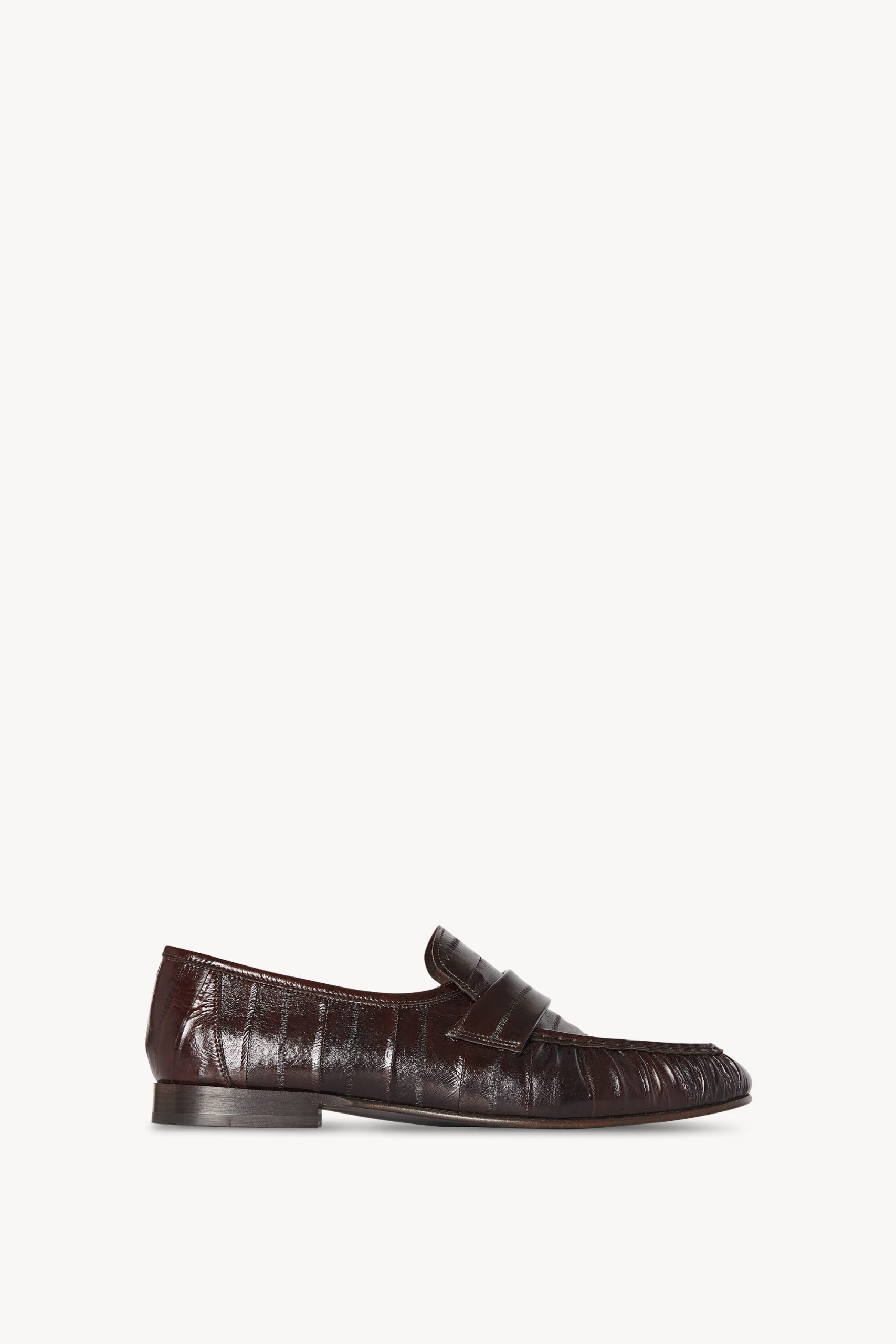 Artisanally-crafted loafer in paneled eelskin leather with natural pleating effect and hand-painted leather sole.