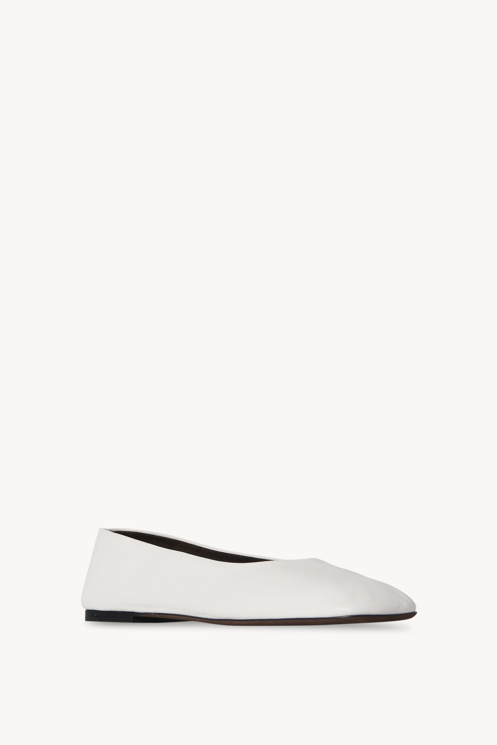 Minimal ballet flat in soft lightweight leather with squared toe and leather sole.