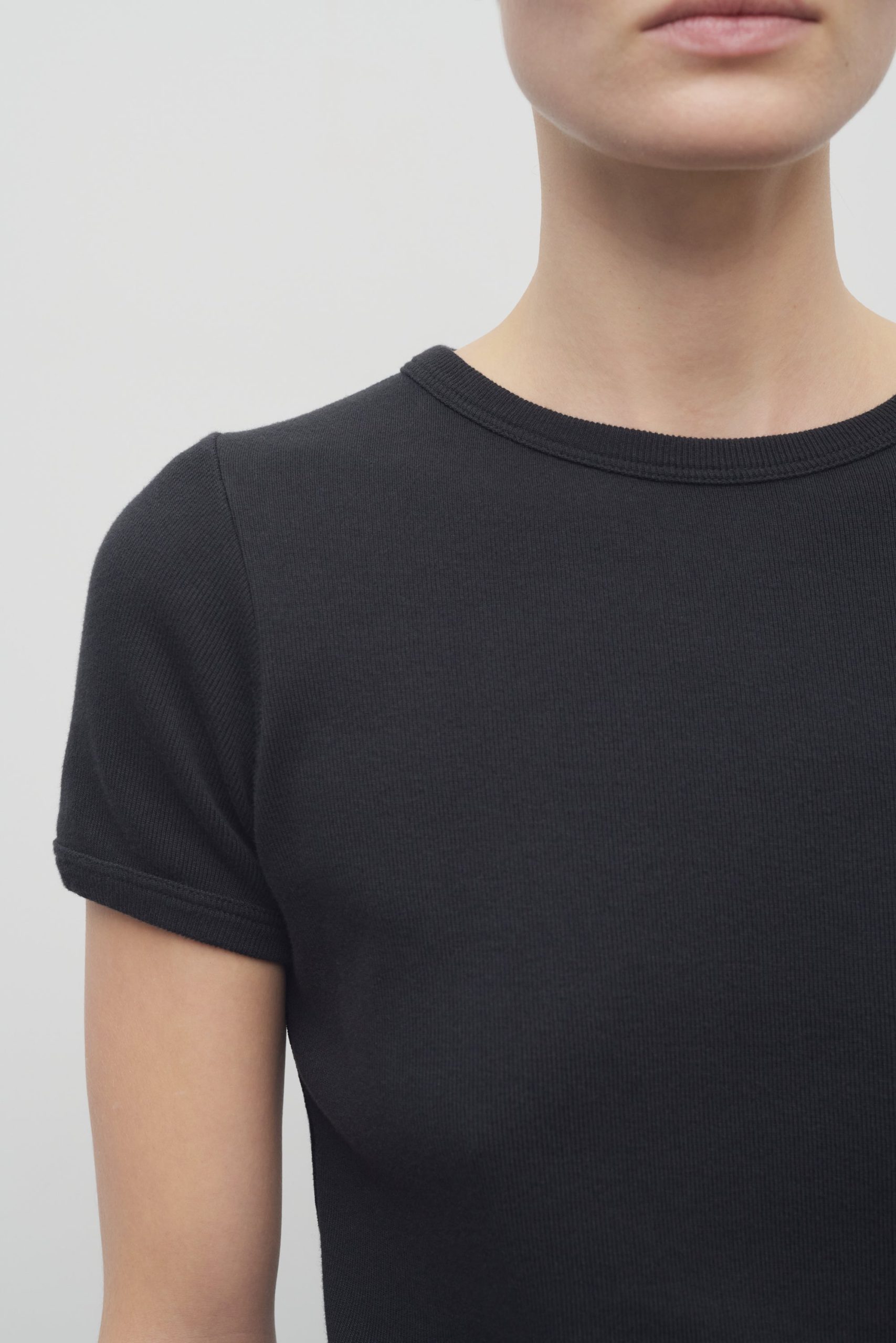 Classic crewneck t-shirt in heavyweight ribbed Japanese cotton with slim fit and ribbed neckline. cuffs. and hem.