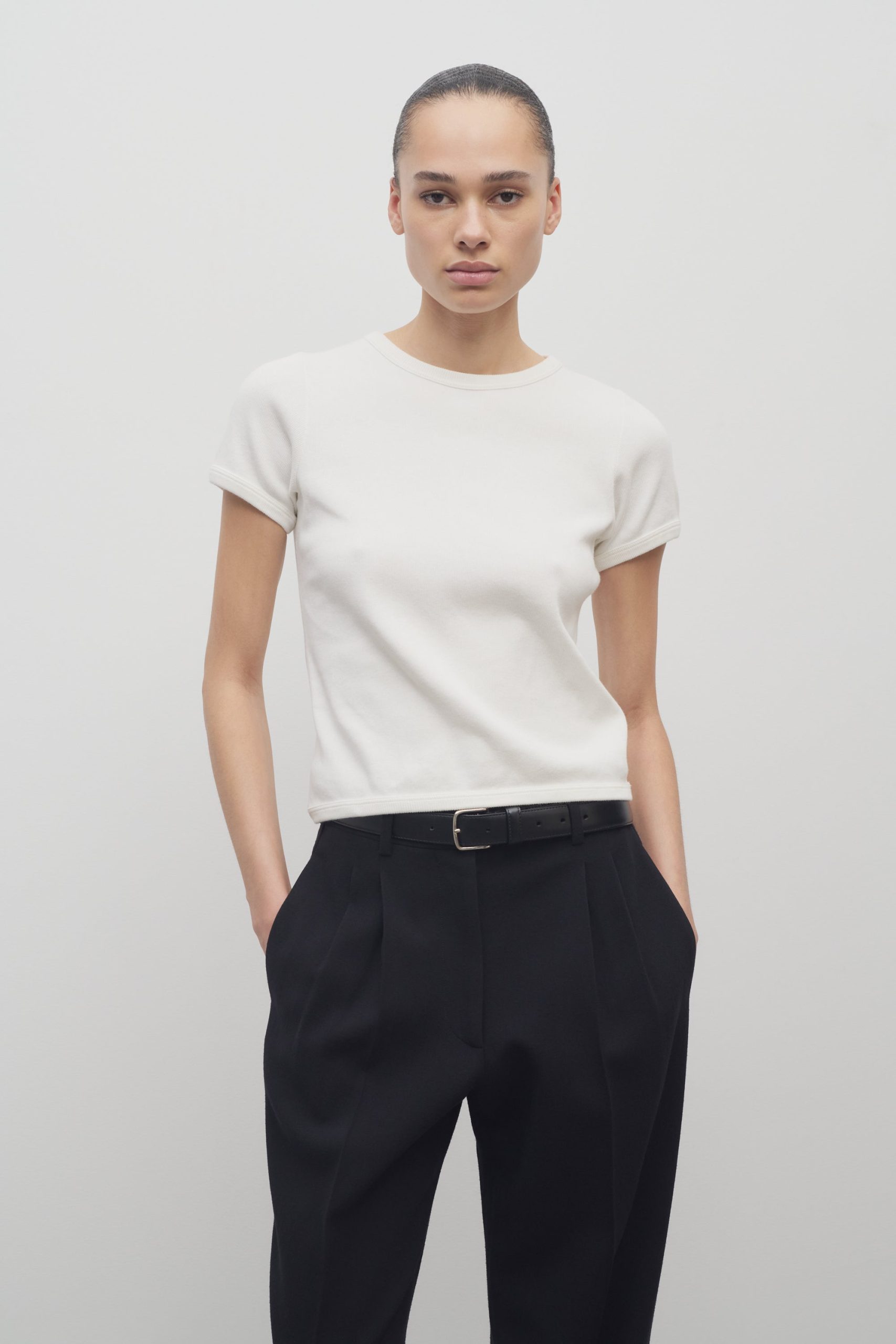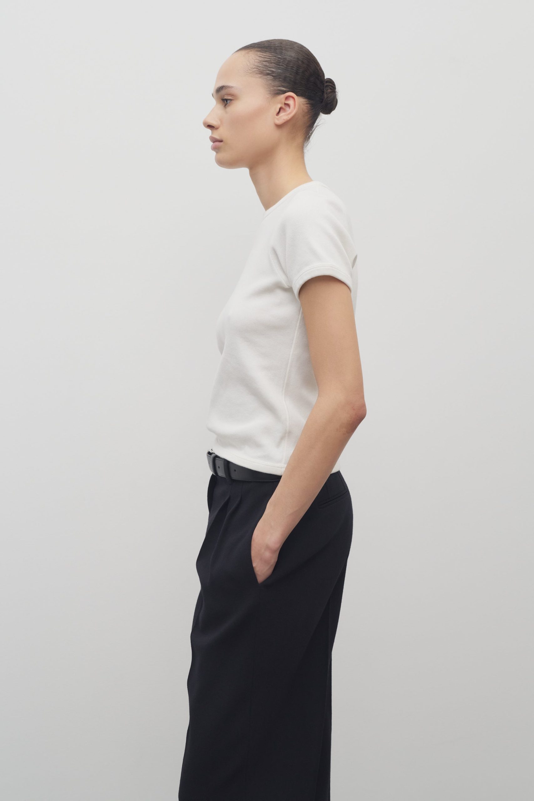 Classic crewneck t-shirt in heavyweight ribbed Japanese cotton with slim fit and ribbed neckline. cuffs. and hem.